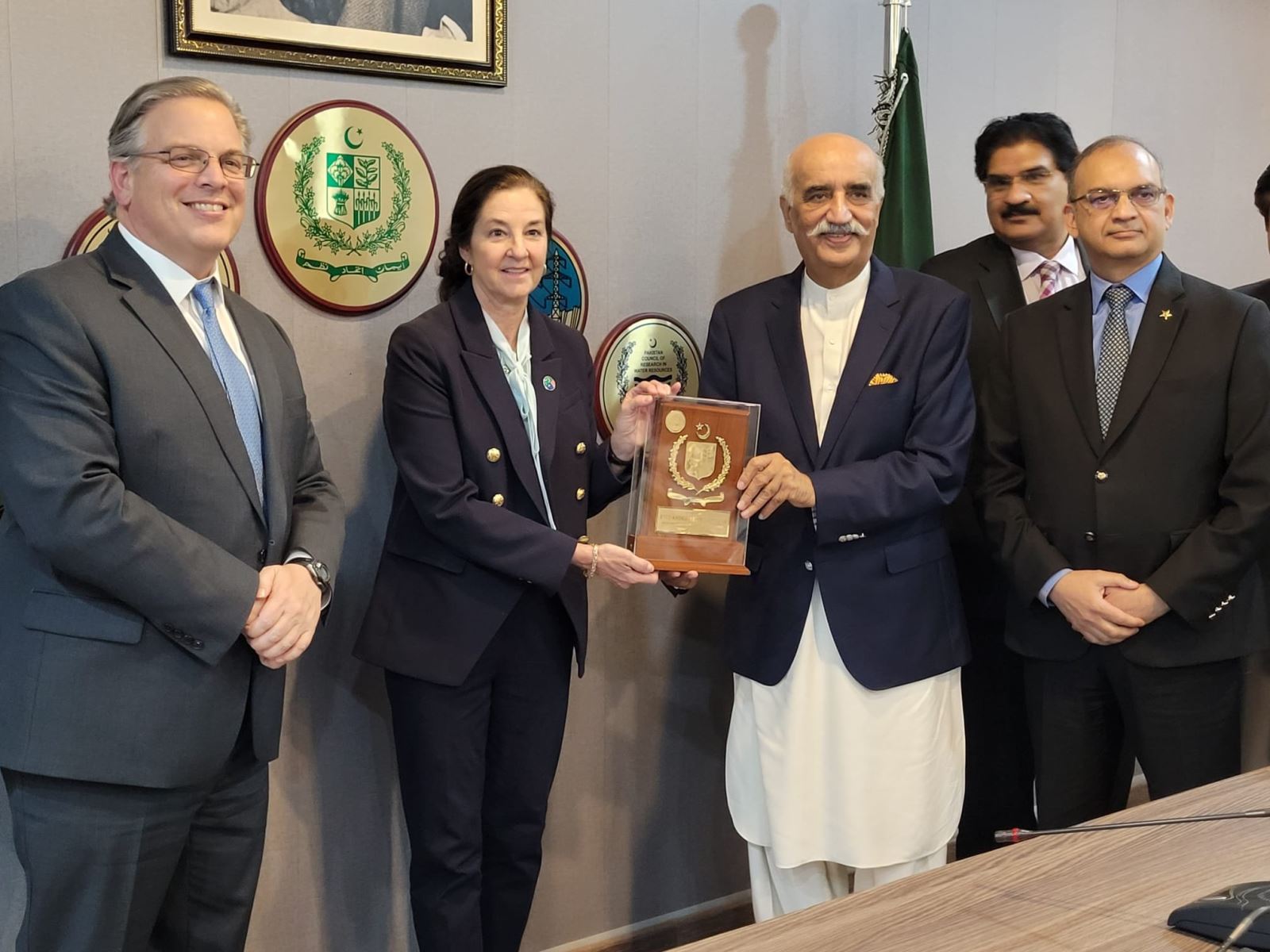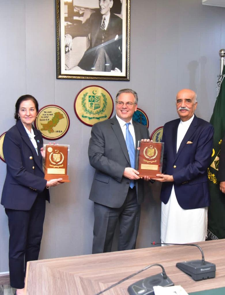 Federal Minister for Water Resources, Syed Khursheed Ahmed Shah met with the US delegation, led by US Assistant Secretary Monica Medina, on 16.03.23 in Islamabad. US Ambassador Mr. Donald Blome, State Minister, Mr. Mohammad Ali Bacha, and Secretary MoWR were also present.