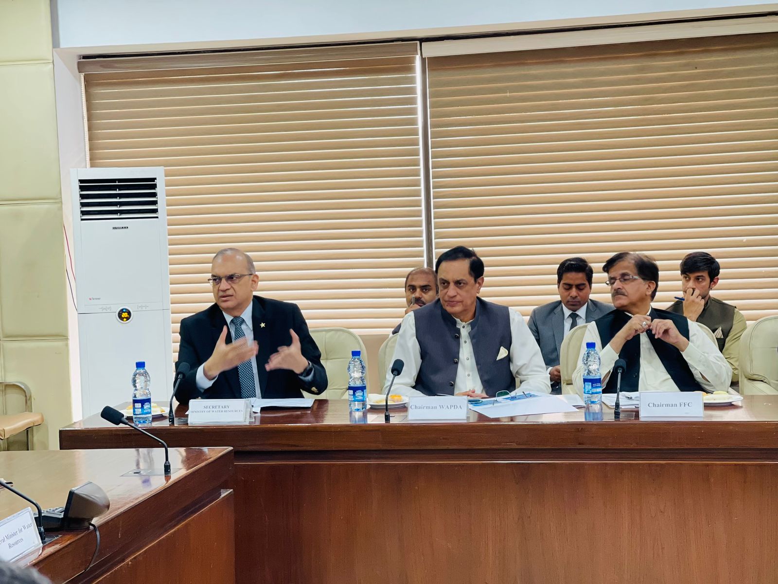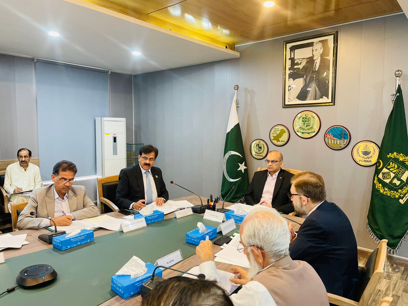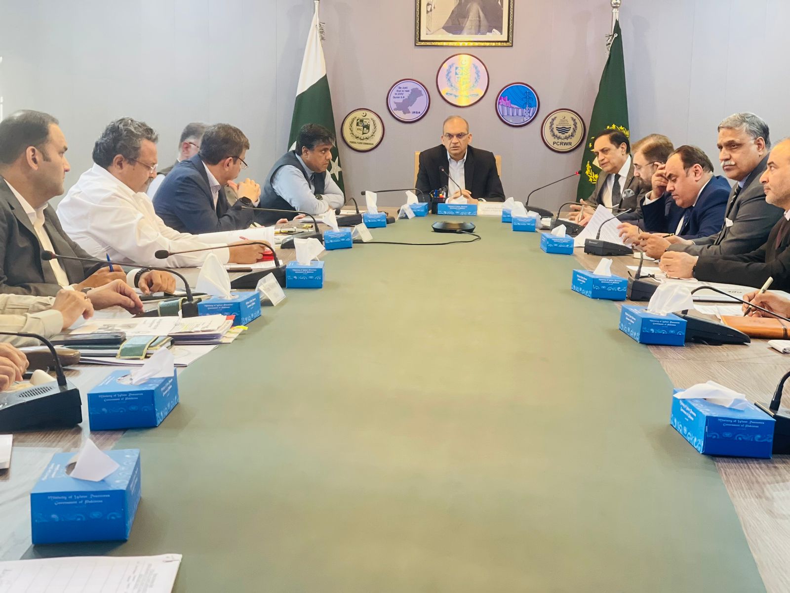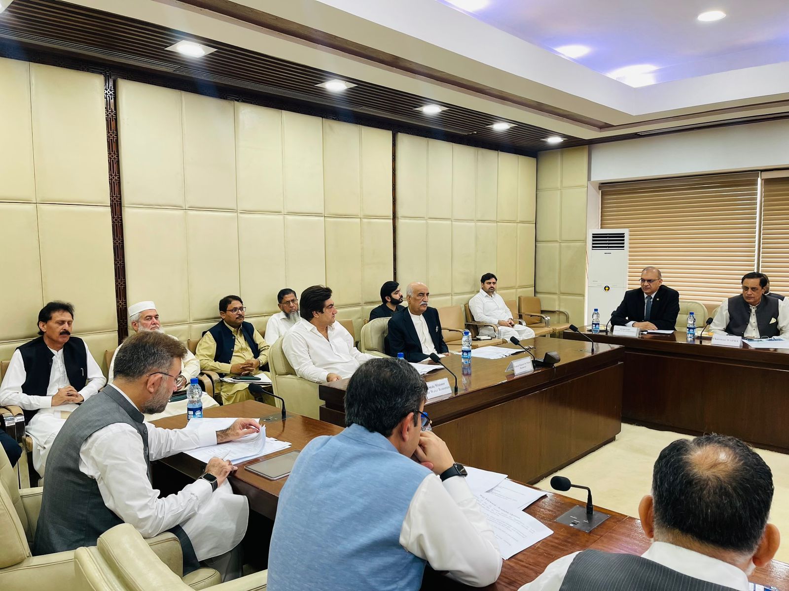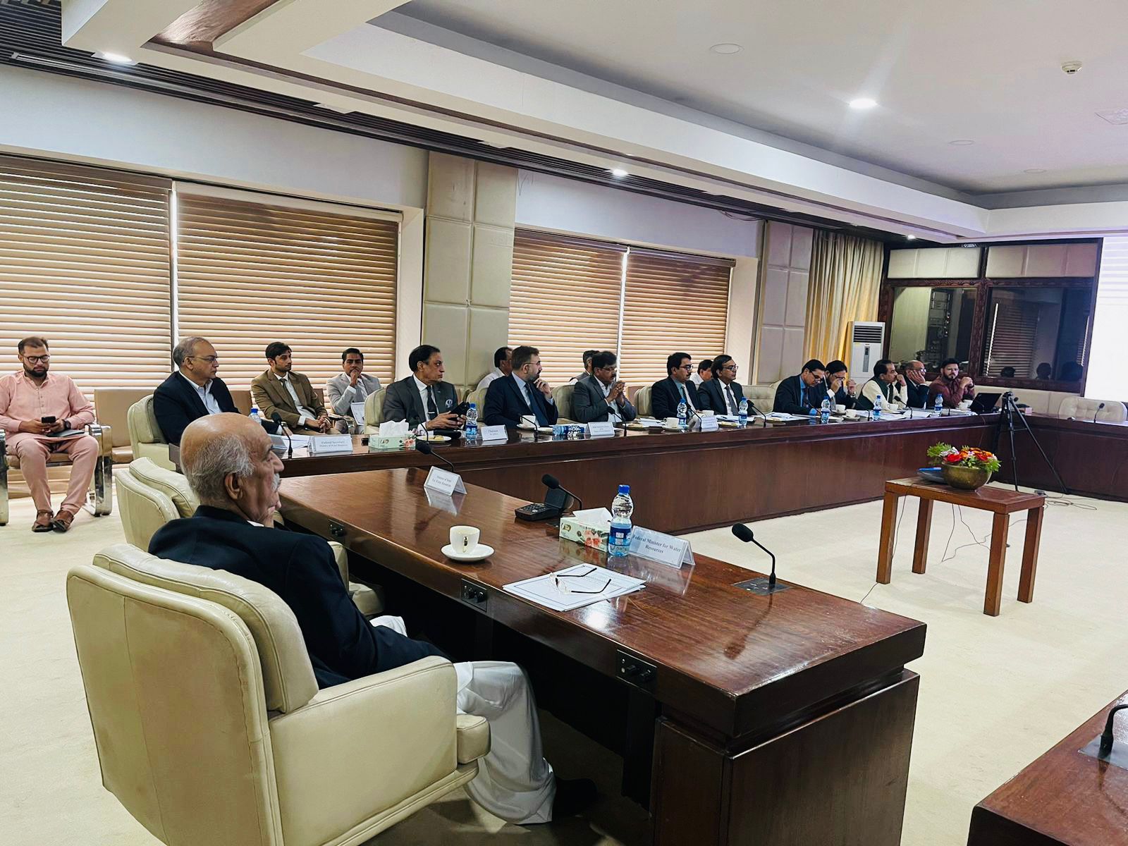 Caretaker Federal Minister for water resources , Ahmad Irfan Aslam is chairing a meeting of the Steering Committee on National Water Policy, in Islamabad on 06-11-23.