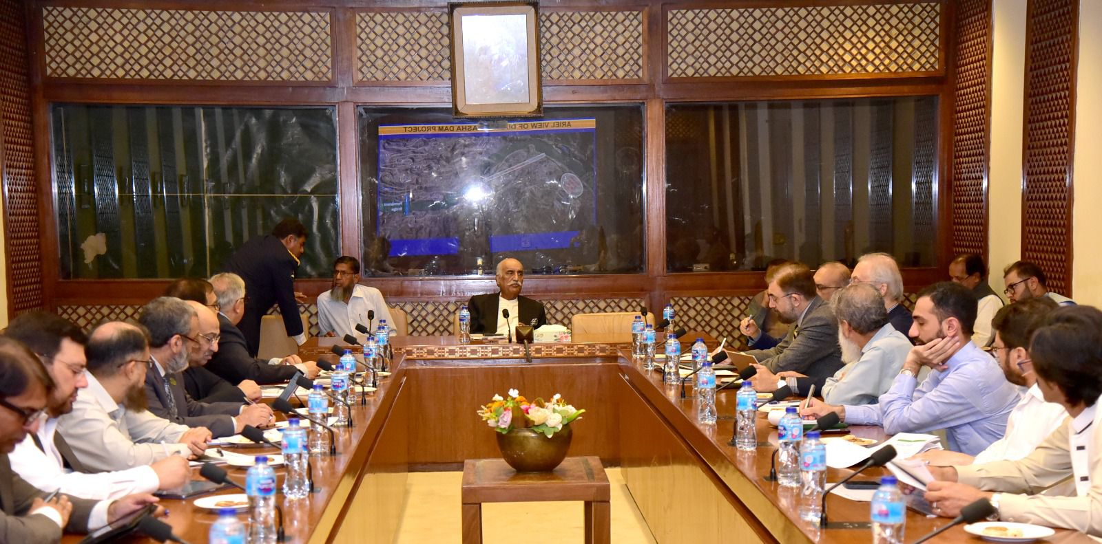 Federal Minister for Water Resources, Syed Khursheed Ahmed Shah, chaired the meeting on the progress of evacuation plans for Diamer Bhasha dam, Dasu HPP & Mohmand Dam. Minister of State MoWR, Secretary MoWR and officials from Power Division attended.