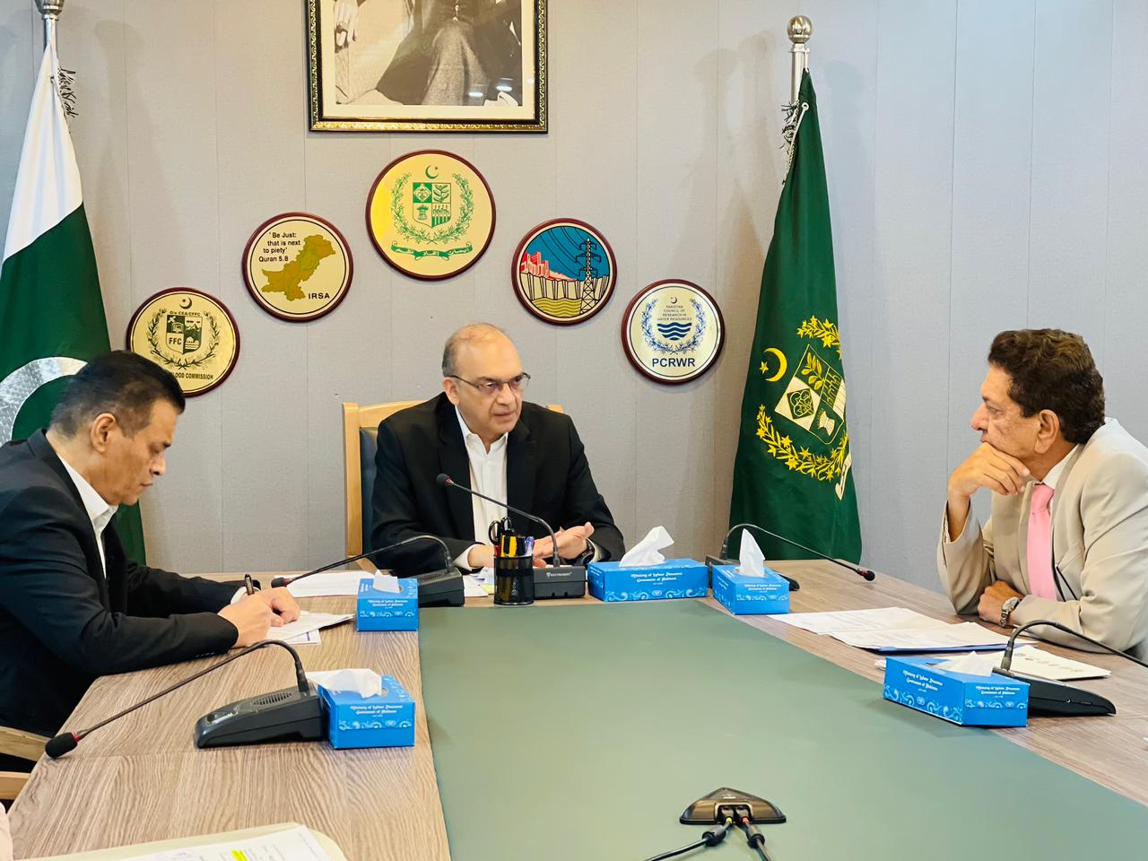 Islamabad – On the directive of the Prime Minister, Federal Minister for Water Resources, Muhammad Mueen Watto chairs a high-level meeting on water storage and flood control, September 23, 2025.